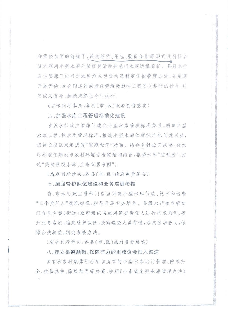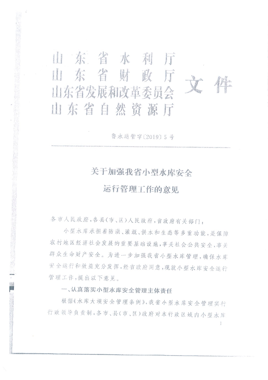 (山東省水利廳等4部門(mén))關(guān)于加強我省小型水庫安全運行管理工作的意見(jiàn)